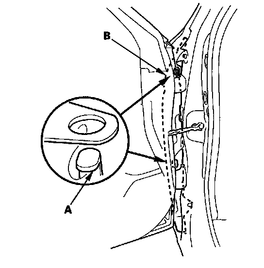 3. Open the front door. Detach the hooks (A) fastening the front fender fairing (B).