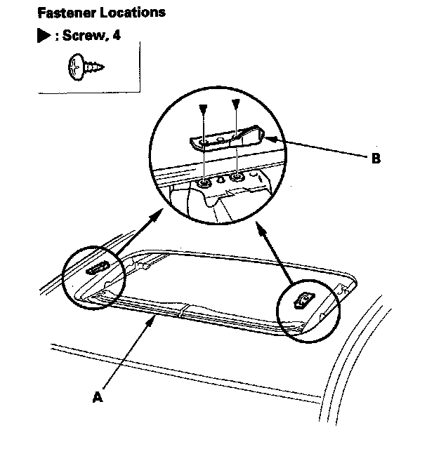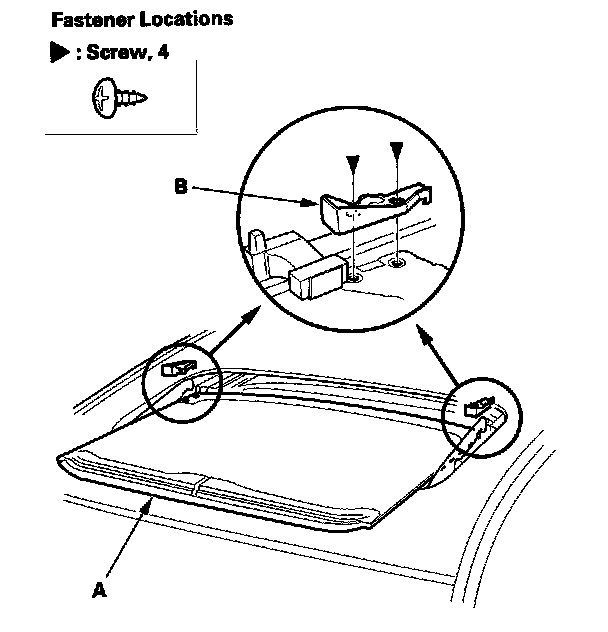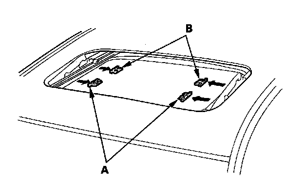 7. Remove both front sunshade base sliders (A) and both rear sunshade base sliders (B).