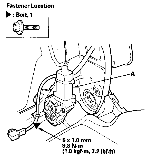 6. Remove the bolt, then remove the recline motor (A). 4-door driver's seat is shown; 2-door driver's seat is similar.
