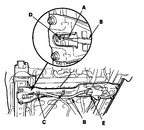 2. Disconnect the cable from the worm gear (D) in the inner seat track by pulling out the housing.