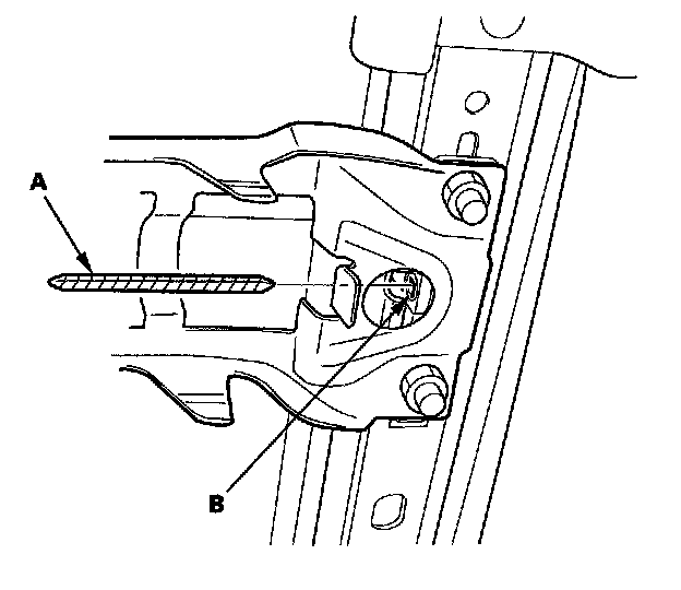 4. Remove the short flex cable (A) from the worm gear (B) in the outer seat track by pulling out it.