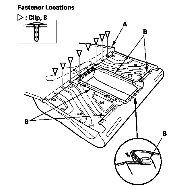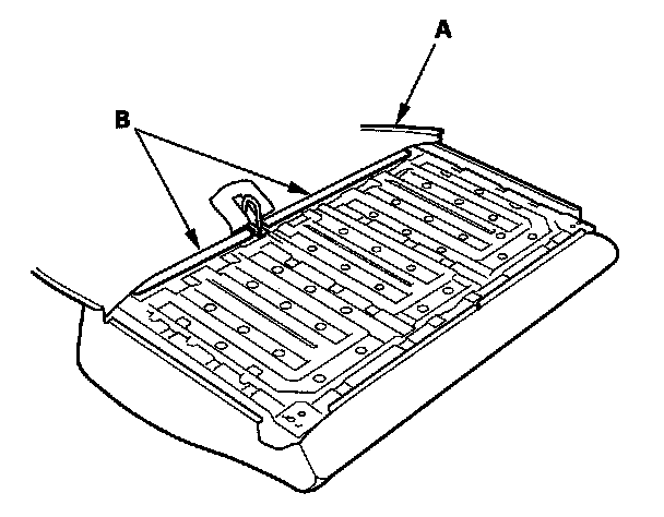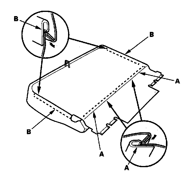5. Pull back the seat-back cover (A), then release the hook strips (B), and remove the clips.