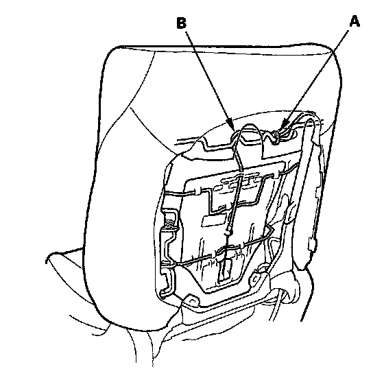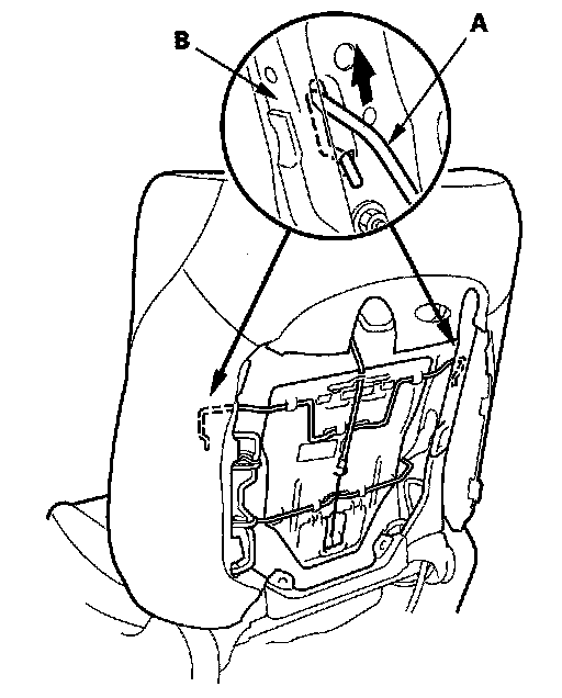 6. Release the lower wire (A) from both active head restraint links (B) of inside the seat-back.