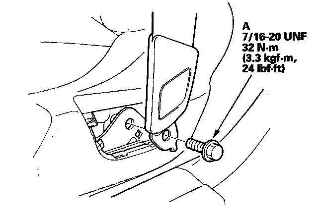 4. 4-door: Remove the lower anchor bolt (A).