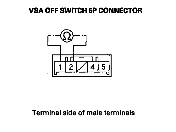 5. Check for continuity between VSA OFF switch 5P connector terminals No. 4 and No. 5. There should be continuity at all times.