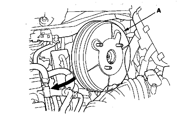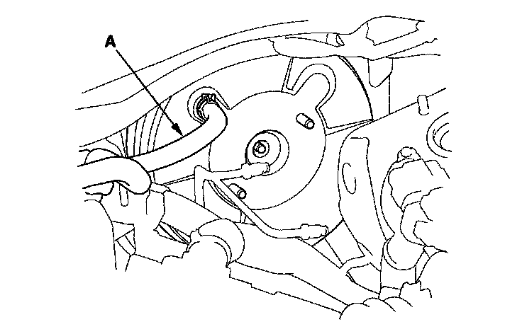 4. Disconnect the brake booster vacuum hose (A) from the brake booster.