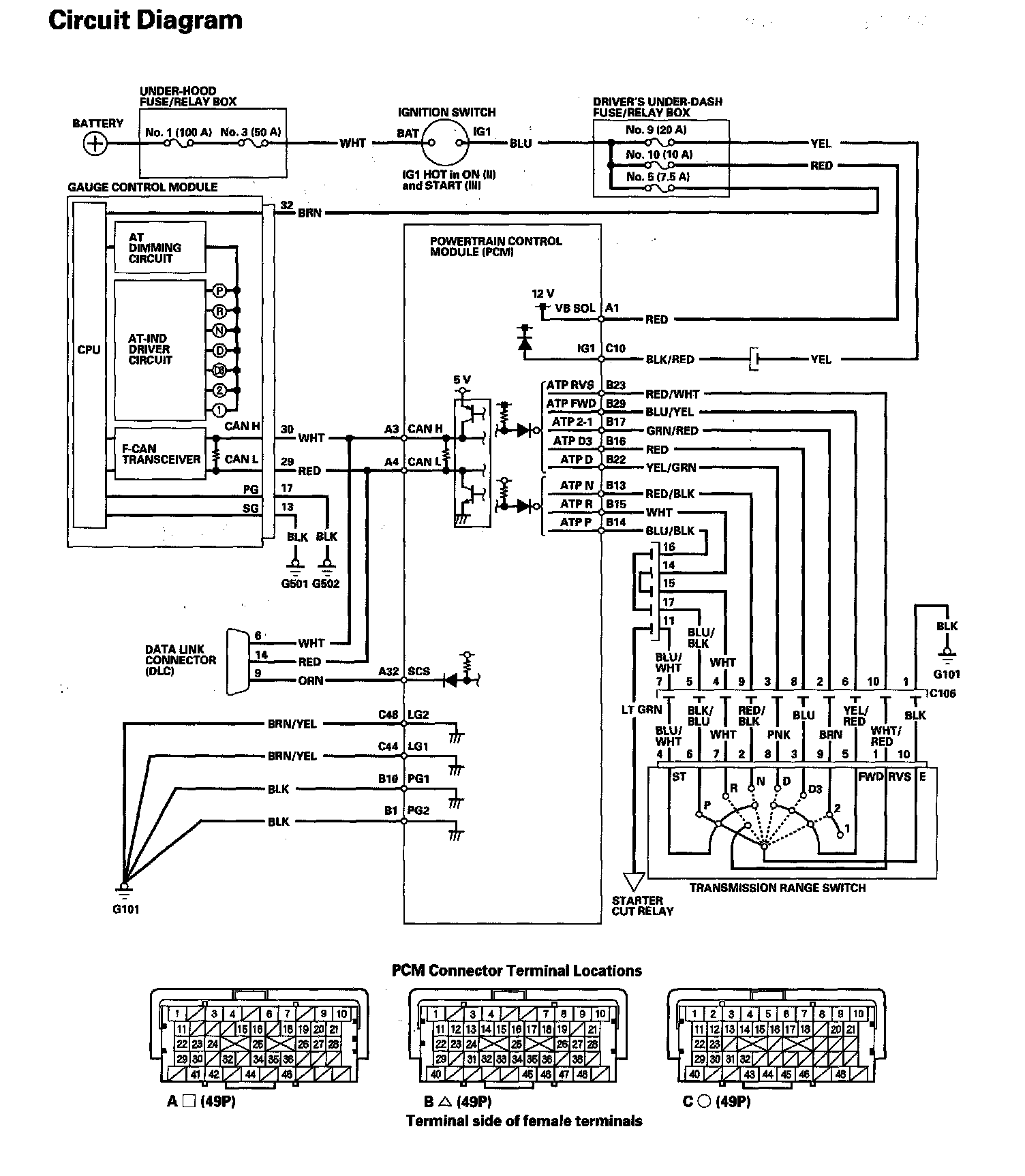 A/T Gear Position Indicator Circuit Diagram