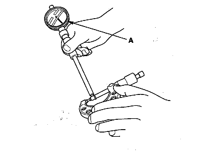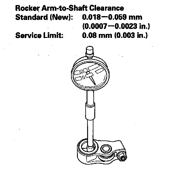 5. Measure the inside diameter of the rocker arm, and check it for an out-of-round condition.
