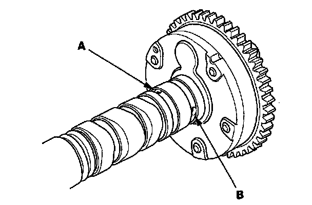 6. Seal the advance holes (A) and retard holes (B) in the No. 1 camshaft journal with tape.