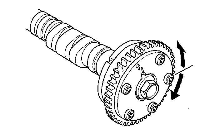 5. Check that the variable valve timing control (VTC) actuator is locked by turning the VTC actuator counterclockwise. If it is not locked, turn the VTC actuator clockwise until it stops, then recheck it. If it is still not locked, replace the VTC actuator.