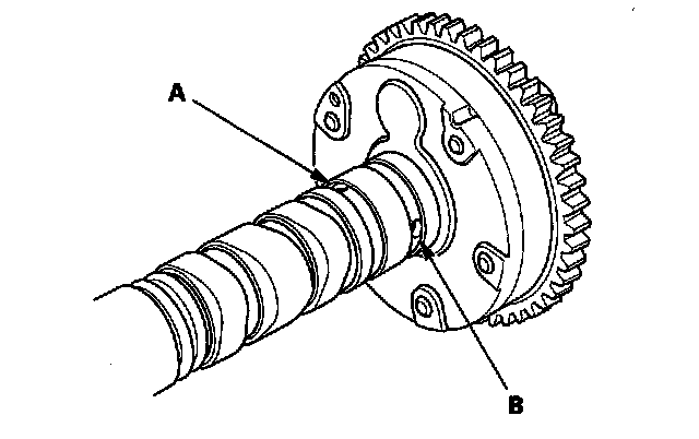 6. Seal the advance holes (A) and retard holes (B) in the No. 1 camshaft journal with tape.