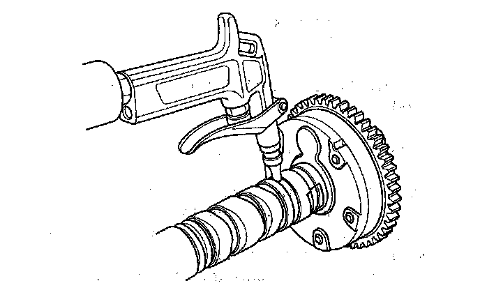 14. Hold the camshaft, and turn the VTC actuator clockwise until you hear it click. Make sure to lock the VTC actuator by turning it.