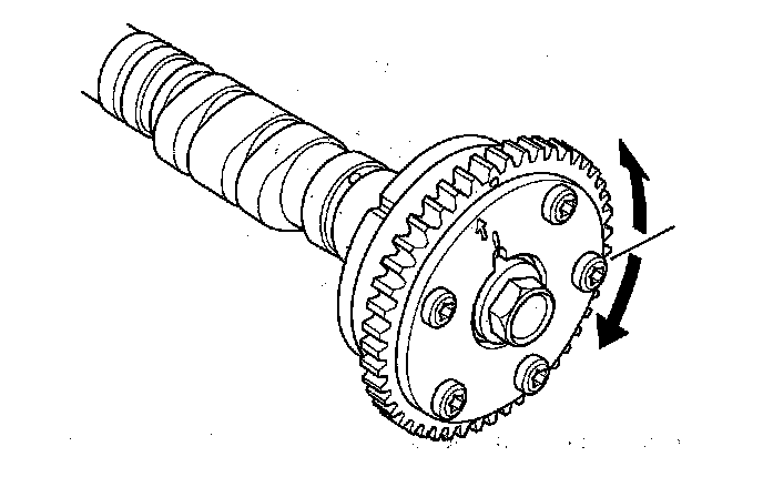 5. Check that the variable valve timing control (VTC) actuator is locked by turning the VTC actuator counterclockwise. If it is not locked, turn the VTC actuator clockwise until it stops, then recheck it. If it is still not locked, replace the VTC actuator.