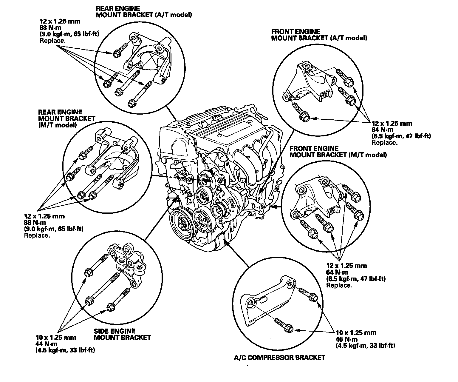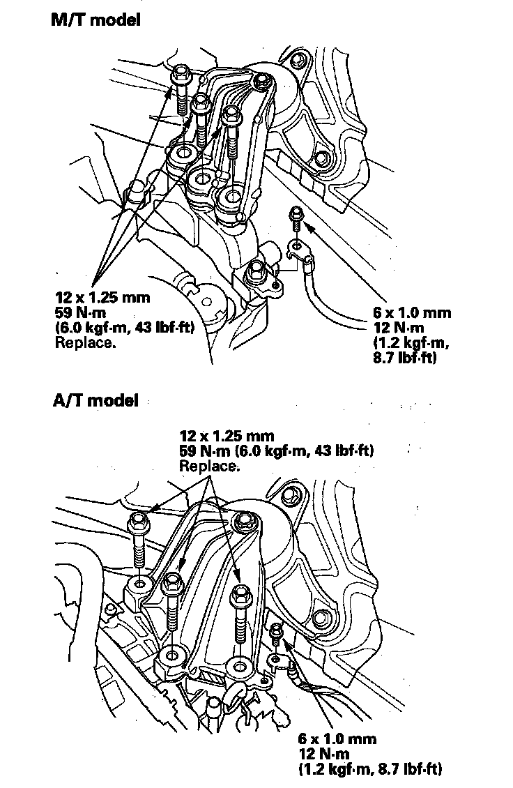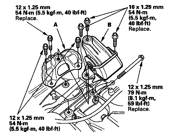 NOTE: Reinstall the mounting bolts and support nuts in the sequence given in the following steps. Failure to follow this sequence may cause excessive noise and vibration, and reduce engine mount life.