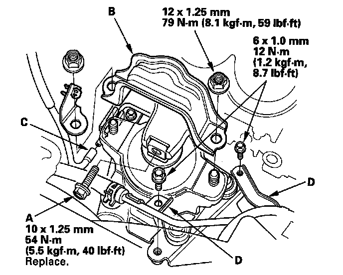 29. A/T model: Install the ATF cooler pipe brackets (D).