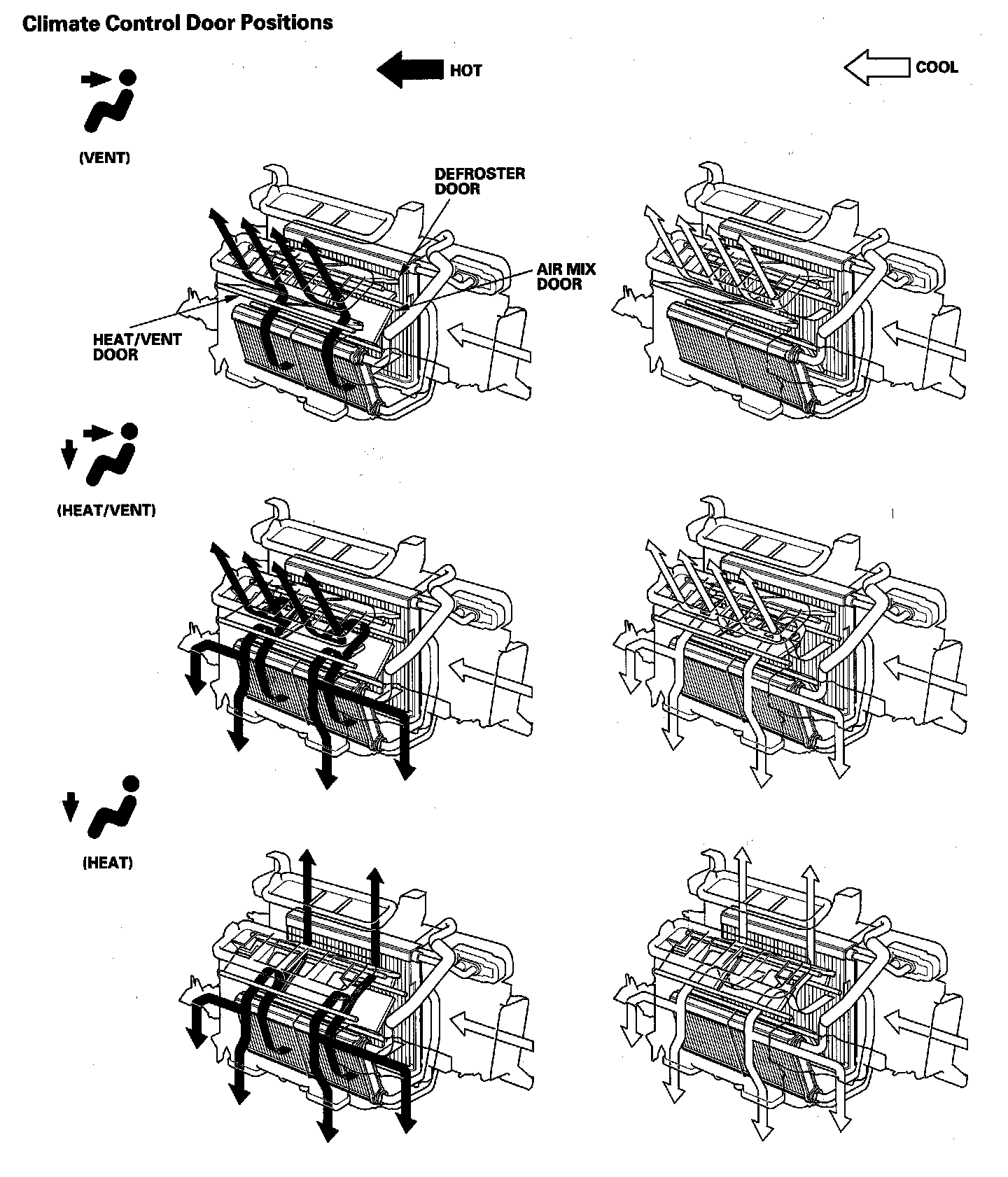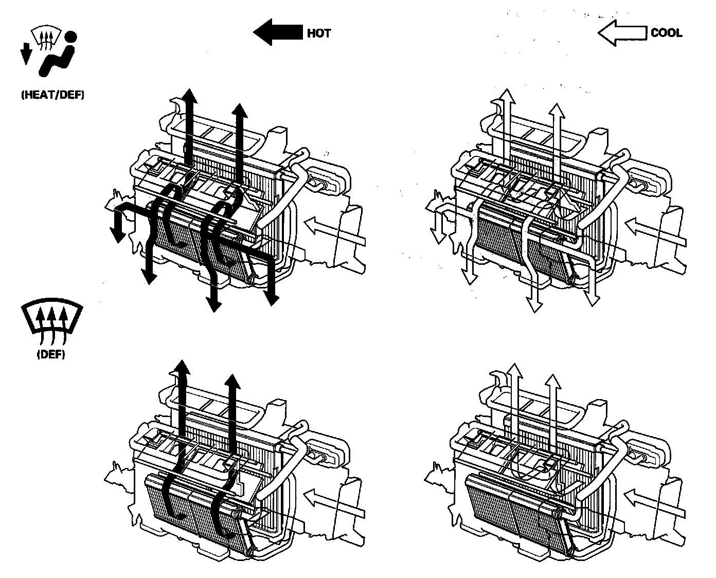 This system automatically controls the temperature and the vent mode of the air direction to the driver and passenger's side depending on the angle of the sun and the direction of the vehicle. It calculates information such as date, time, longitude, and latitude from the navigation system, as well as the irradiate strength of the sun from the sunlight sensor, to determine the appropriate mode position and temperature to be directed to each side.