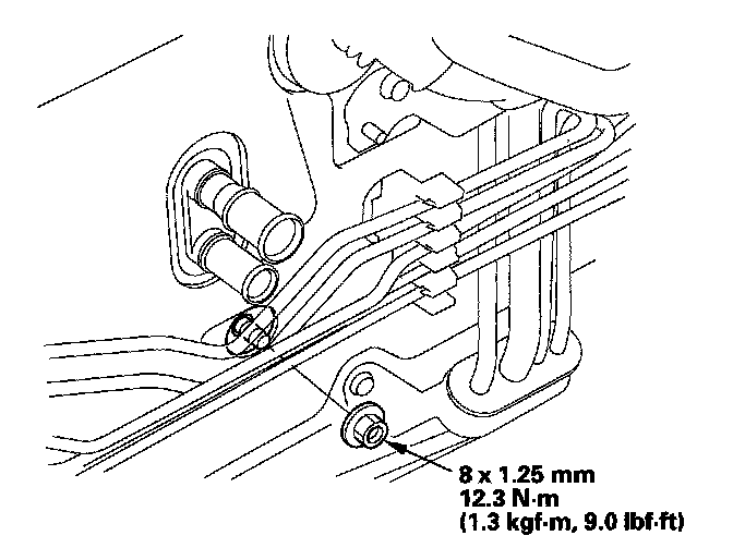 5. Remove the mounting nut from the heater unit. Take care not to damage or bend the fuel lines or brake lines, etc.
