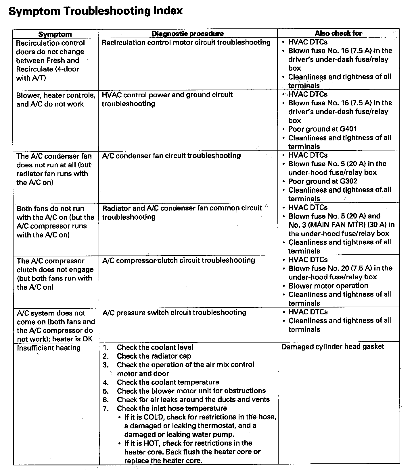 Symptom Troubleshooting Index: