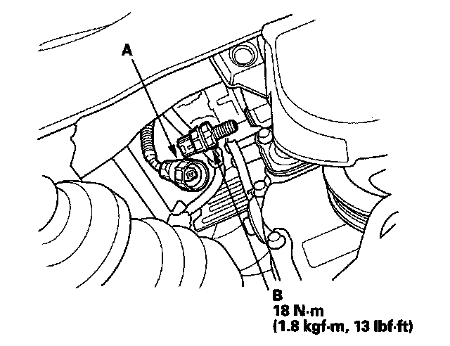 Oil Pressure Switch Replacement1. Disconnect the oil pressure switch connector (A), then remove the oil pressure switch (B).