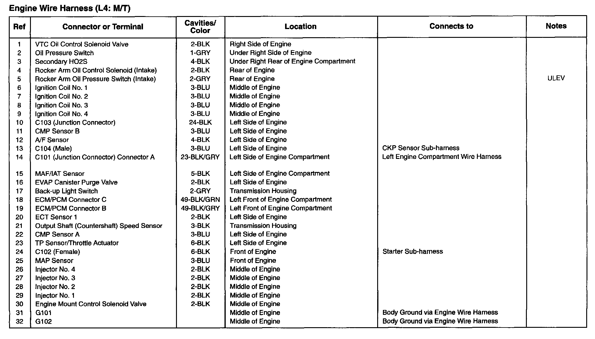 Engine Wire Harness (L4: M/T):