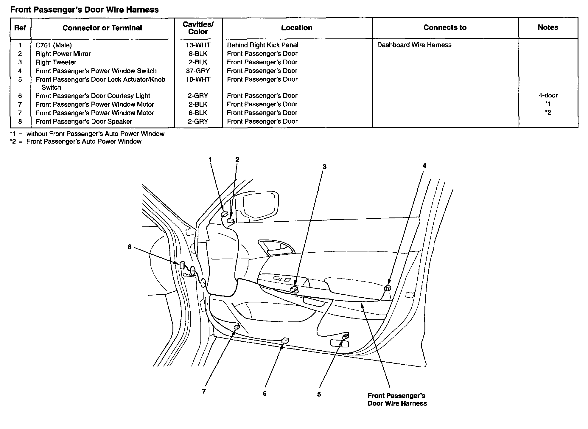 Front Passenger's Door Wire Harness: