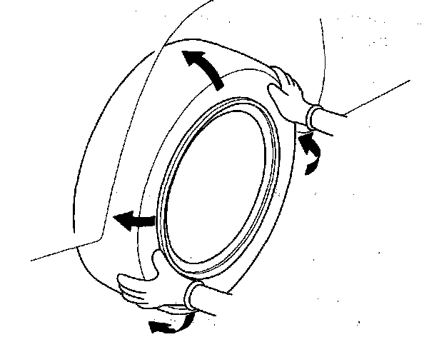 6. Check the suspension ball joints. (Hold a tire with your hands, and move it up and down and right and left to check for wobbling.)