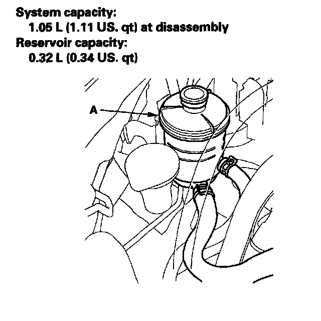 Fluid ReplacementCheck the reservoir (A) at regular intervals, and add the recommended fluid as necessary. Always use Honda Power Steering Fluid. Using any other type of power steering fluid or automatic transmission fluid can cause increased wear, fluid leaks, and poor steering in cold weather.