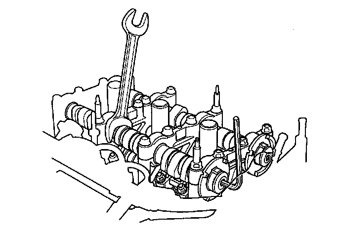 3. Hold the camshaft with an open-end wrench, then loosen the bolt.
