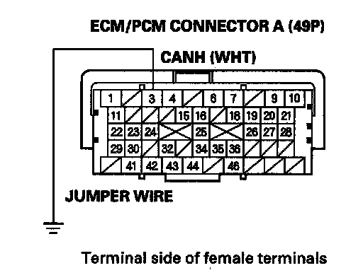 7. Connect ECM/PCM connector terminal A3 to body ground with a jumper wire.