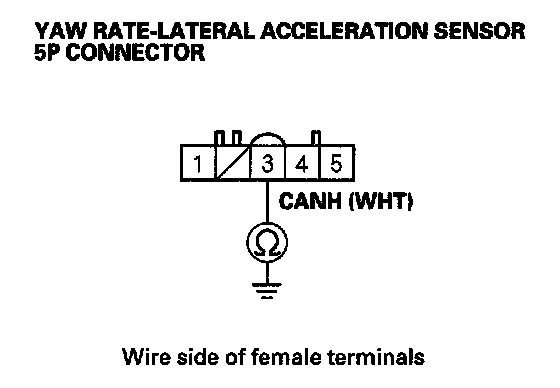 10. Check for continuity between yaw rate-lateral acceleration sensor 5P connector terminal No. 3 and body ground.