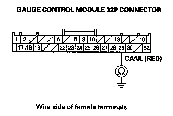 15. Check for continuity between gauge control module 32P connector terminal No. 29 and body ground.