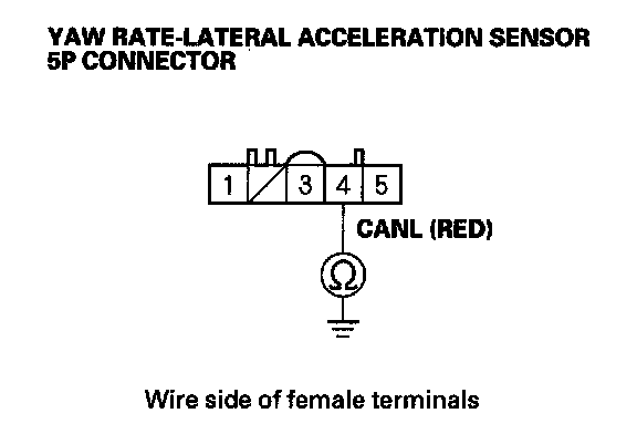 17. Check for continuity between yaw rate-lateral acceleration sensor 5P connector terminal No. 4 and body ground.