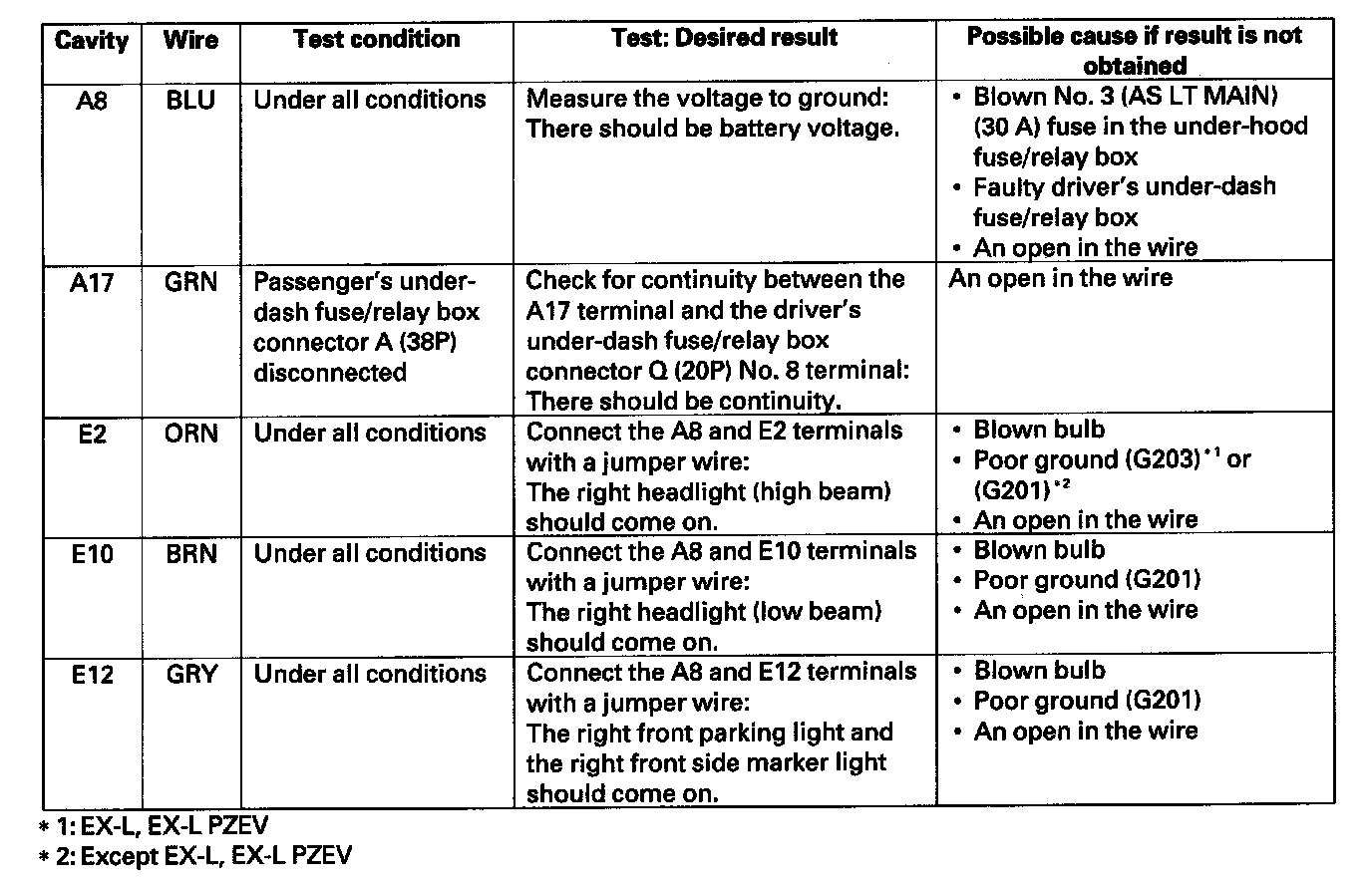 - Before testing, make sure the No. 15 (7.5 A) fuse in the driver's under-dash fuse/relay box is OK.