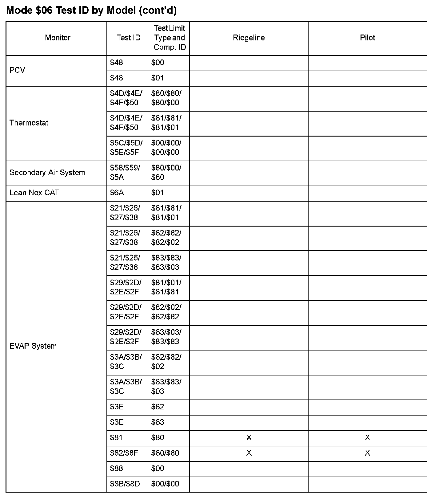 SAE J1979 Mode $06 Test Information: All 2008 Hondas