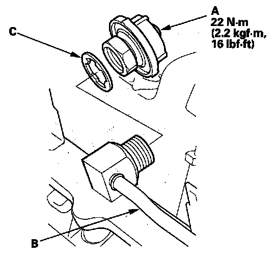 6. Install the parts in the reverse order of removal with a new sealing washer (C).