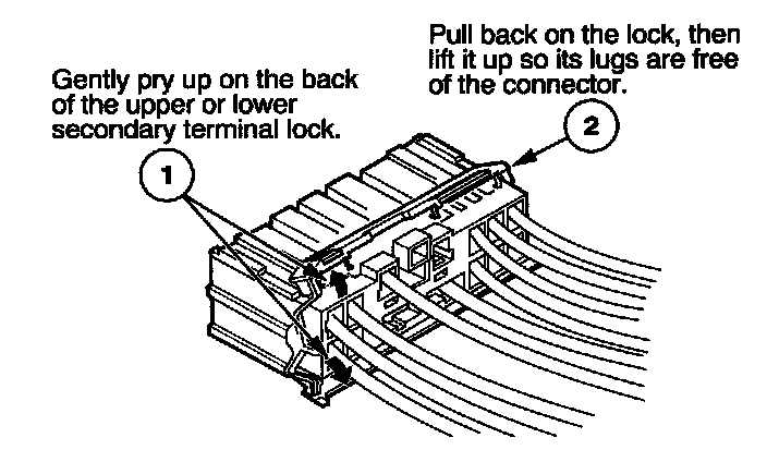 - If it has a secondary terminal lock, go to Connectors With a Secondary Lock. A secondary lock, found on most connectors on some models, is an additional locking device on the connector housing as a backup for the primary lock on the terminal.