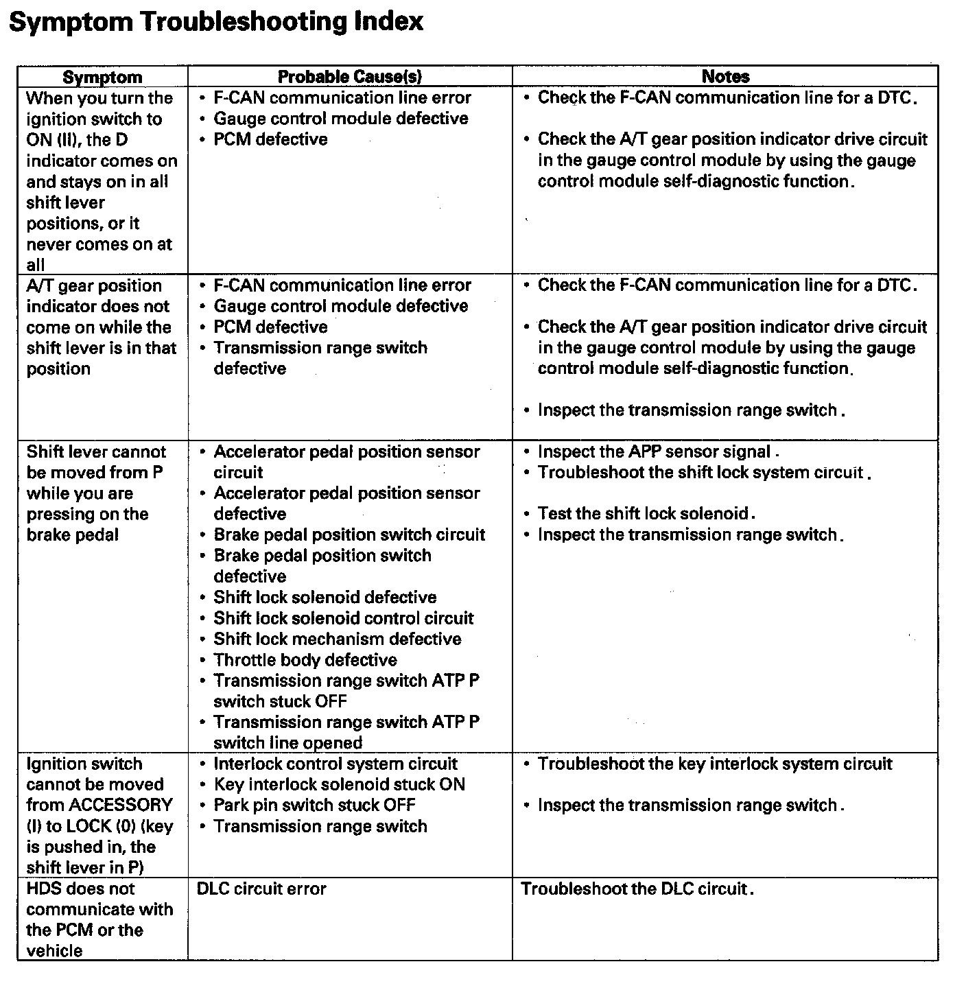 Symptom Troubleshooting Index