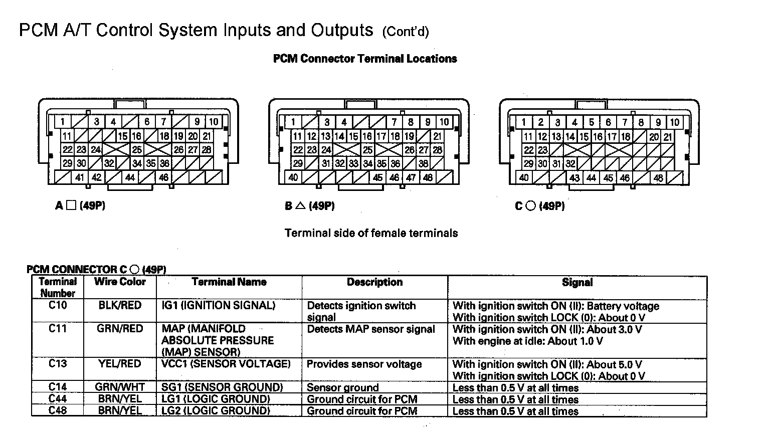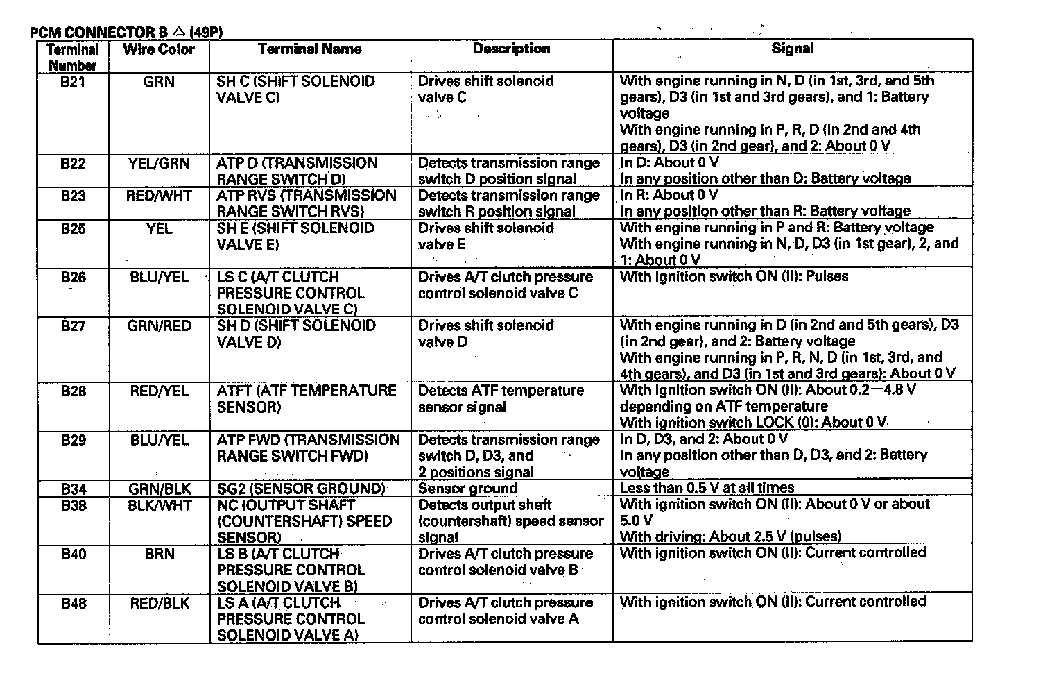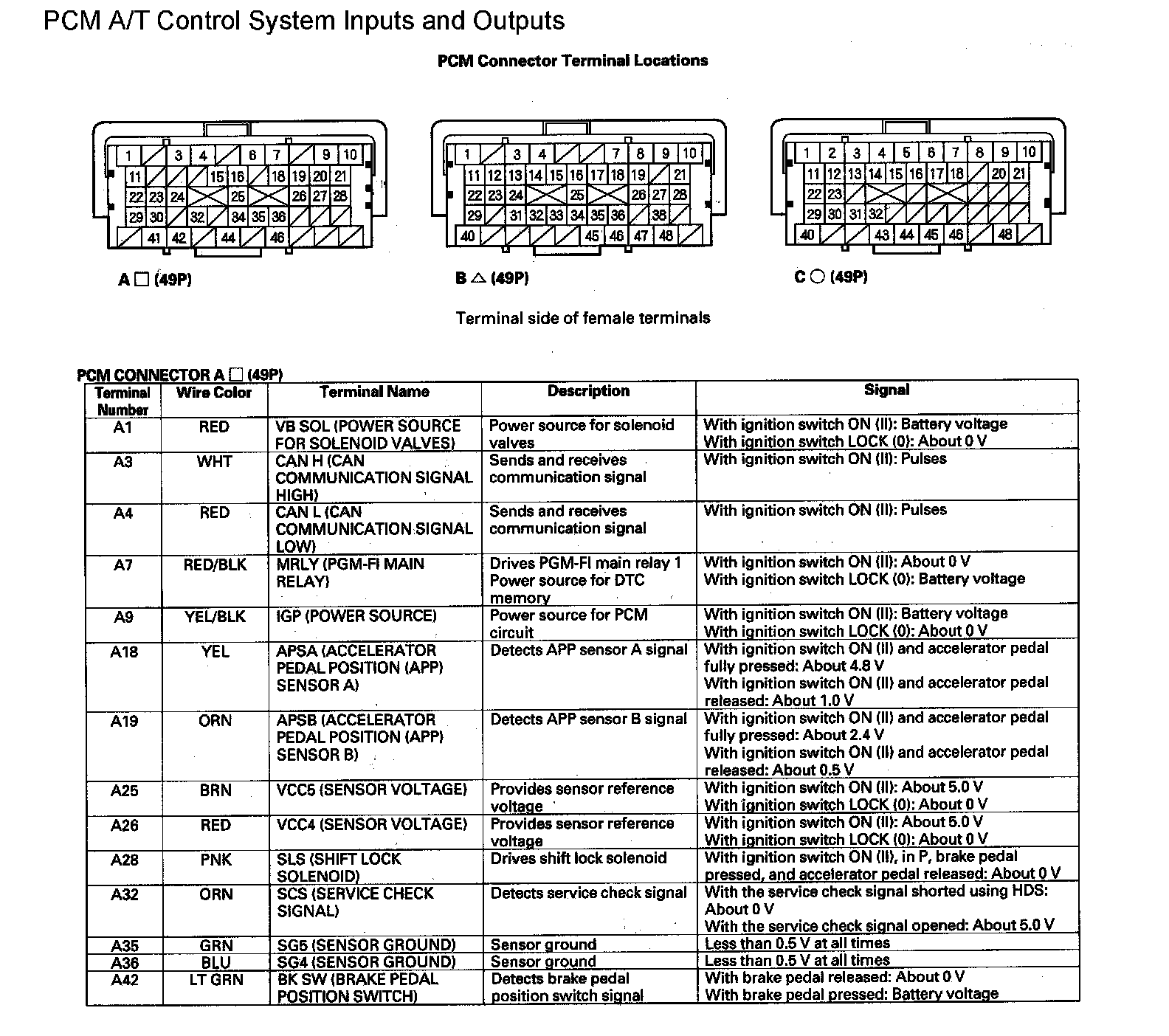 PCM A/T Control System Inputs and OutputsPCM A/T Control System Inputs and Outputs (Part 1):