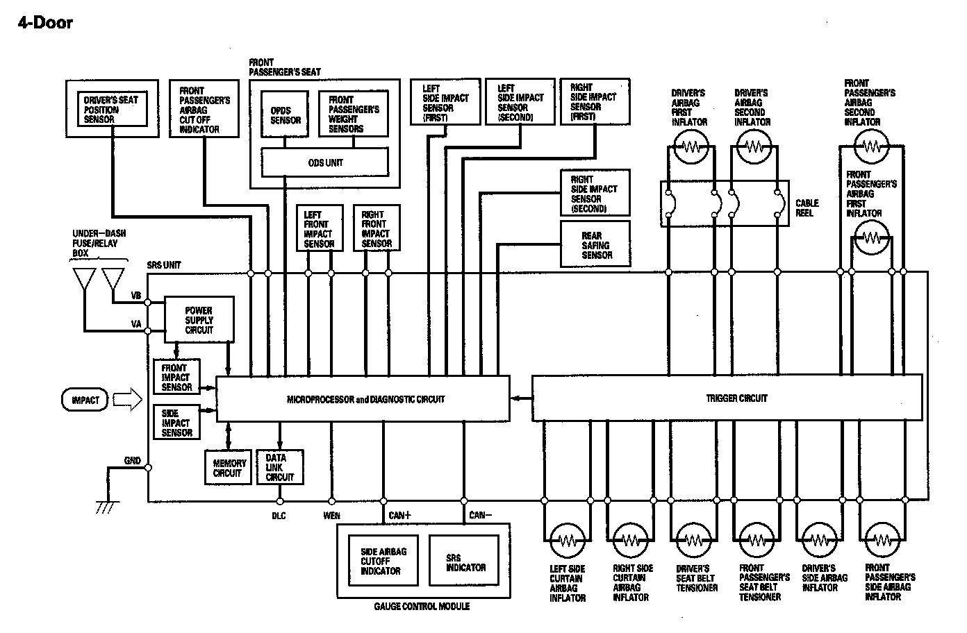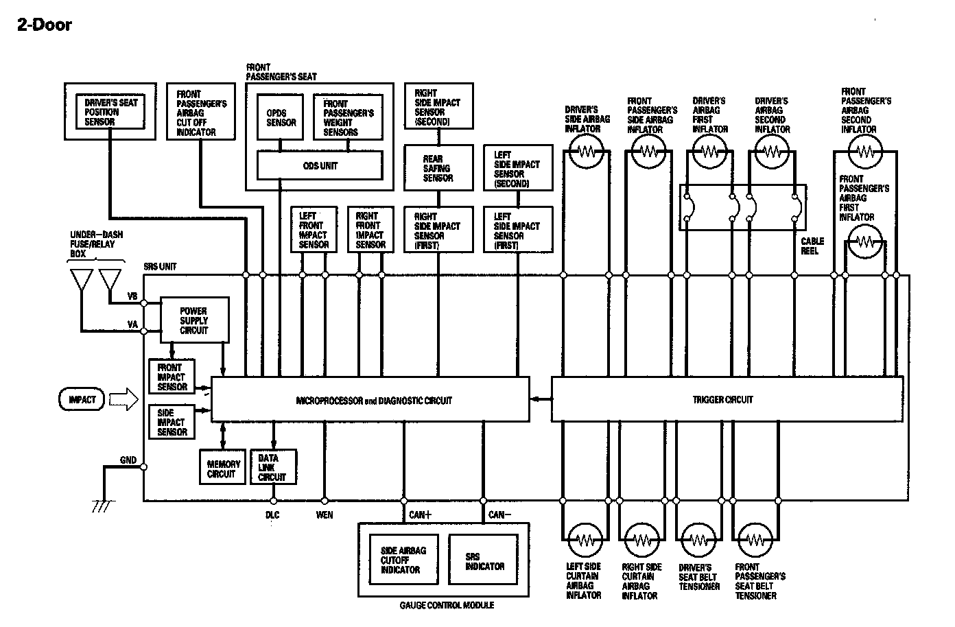 1. Side impact sensor or the rear safing sensor must activate, and send electrical signals to the microprocessor.