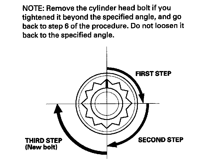 After torquing, tighten all cylinder head bolts in two steps (90° per step)