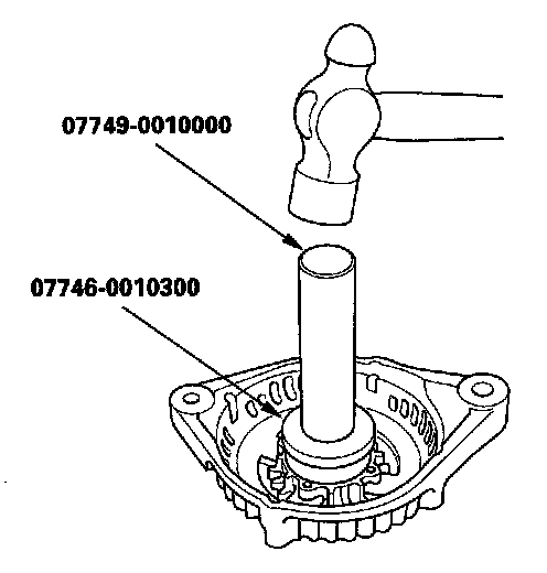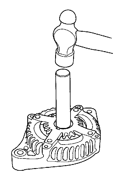 12. Install a new front bearing in the driver-end housing with a hammer, the handle driver, and the attachment.