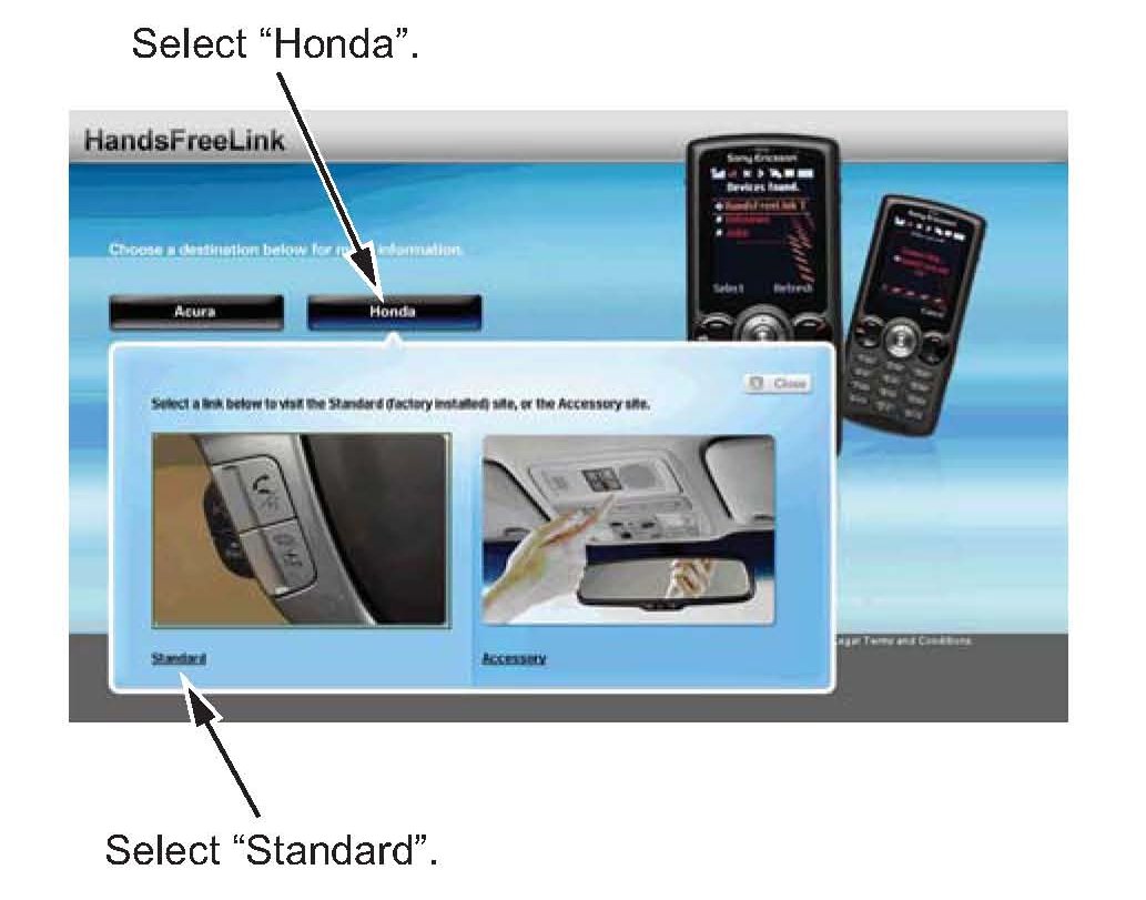2. Select Honda, then select Standard for factory-installed Honda HFL.
