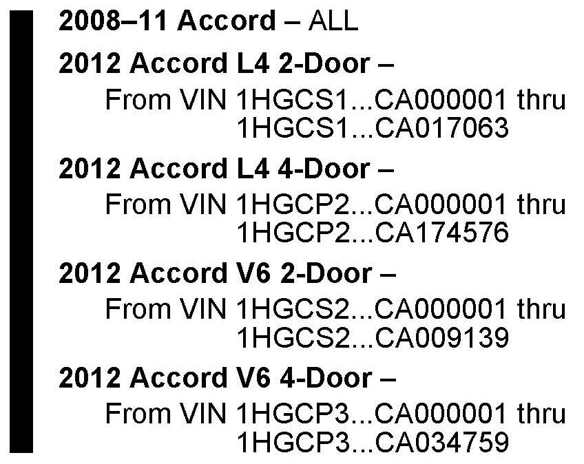 *^ Under VEHICLES AFFECTED, THE VIN ranges and