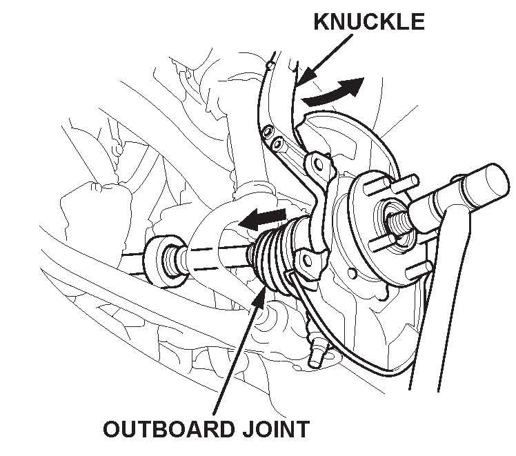 Do not pull the driveshaft end outward. The driveshaft inboard joint may come apart. During installation, apply grease to the mating surfaces of the wheel bearing and the driveshaft outboard joint.