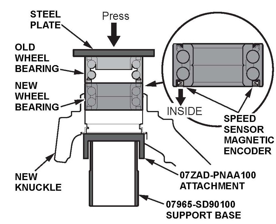 ^ Be careful not to damage the magnetic encoder surface when you insert the new wheel bearing.