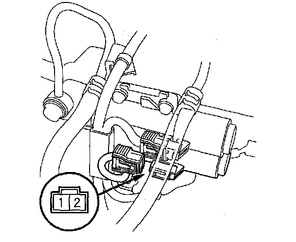 13. Connect a jumper wire from the negative battery terminal to A/T clutch pressure control solenoid valve B connector terminal No. 2, and connect another jumper wire from the positive battery terminal to connector terminal No. 1. Make sure A/T clutch pressure control solenoid valve B moves.