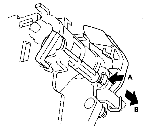 7. Release the lock (A) of the shift lock release, and remove the shift lock release and the release spring (B).