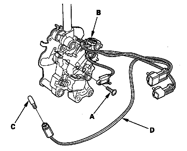 9. Remove the park pin switch/A/T gear position indicator panel light harness (D).