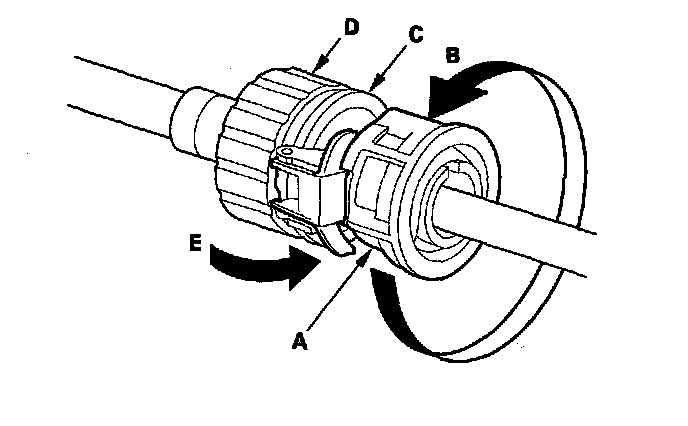 13. Rotate the socket holder retainer (A) counterclockwise (B) until it stops to create clearance (C) between the socket holder (D) and the holder retainer, and push in the retainer (E) to lock it.