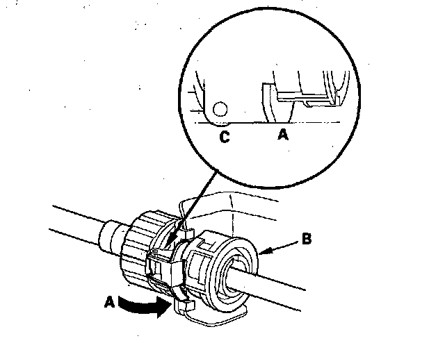 5. Rotate the socket holder retainer (A) counterclockwise (B) until it stops, and push in the retainer (C) to lock it.